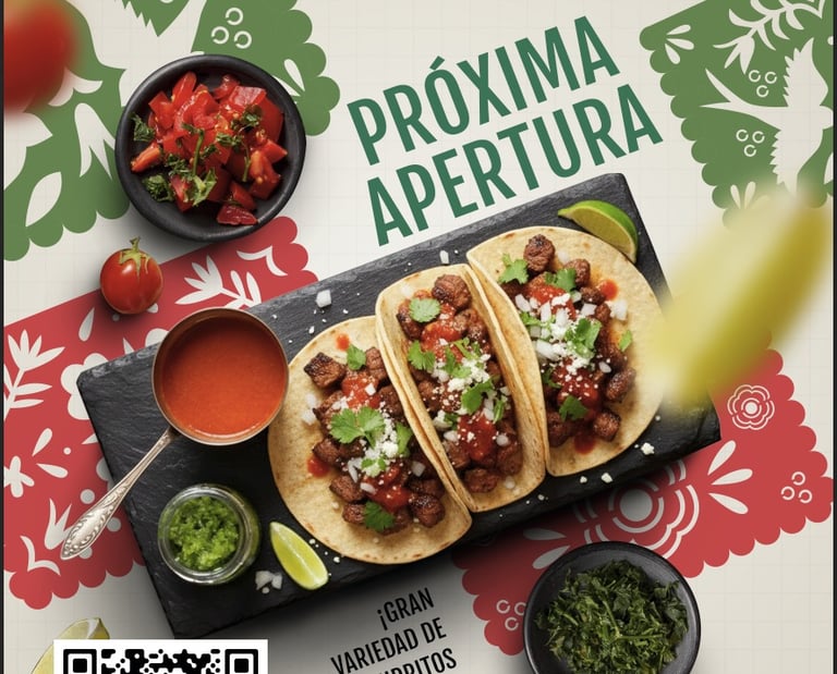 Comida mexicana casera, ambiente cálido y comida para llevar.